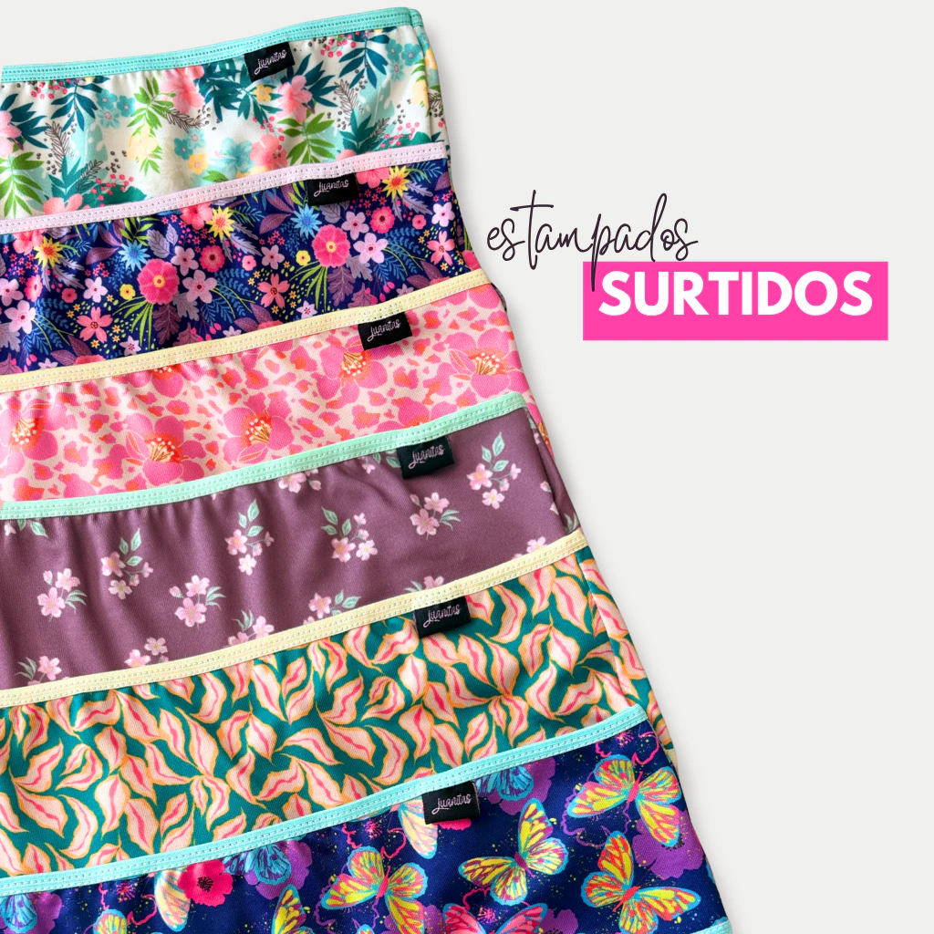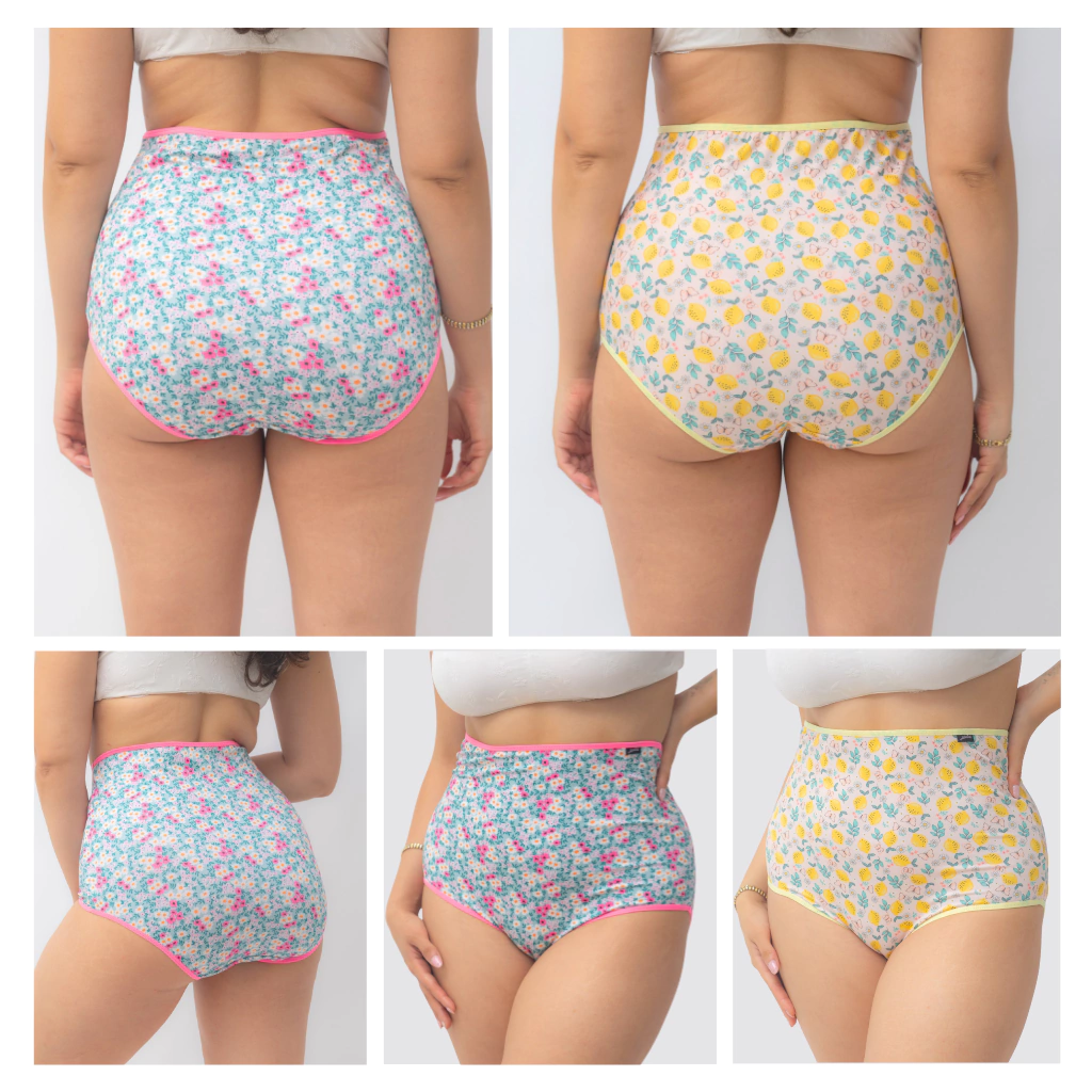 Este pack de bombachas altas de microfibra estampada cuenta con diseños únicos y coloridos. Dale un toque de color a la ropa de tu dia a dia. Su corte ofrece un calce perfecto y cómodo, ideal para todos los días.