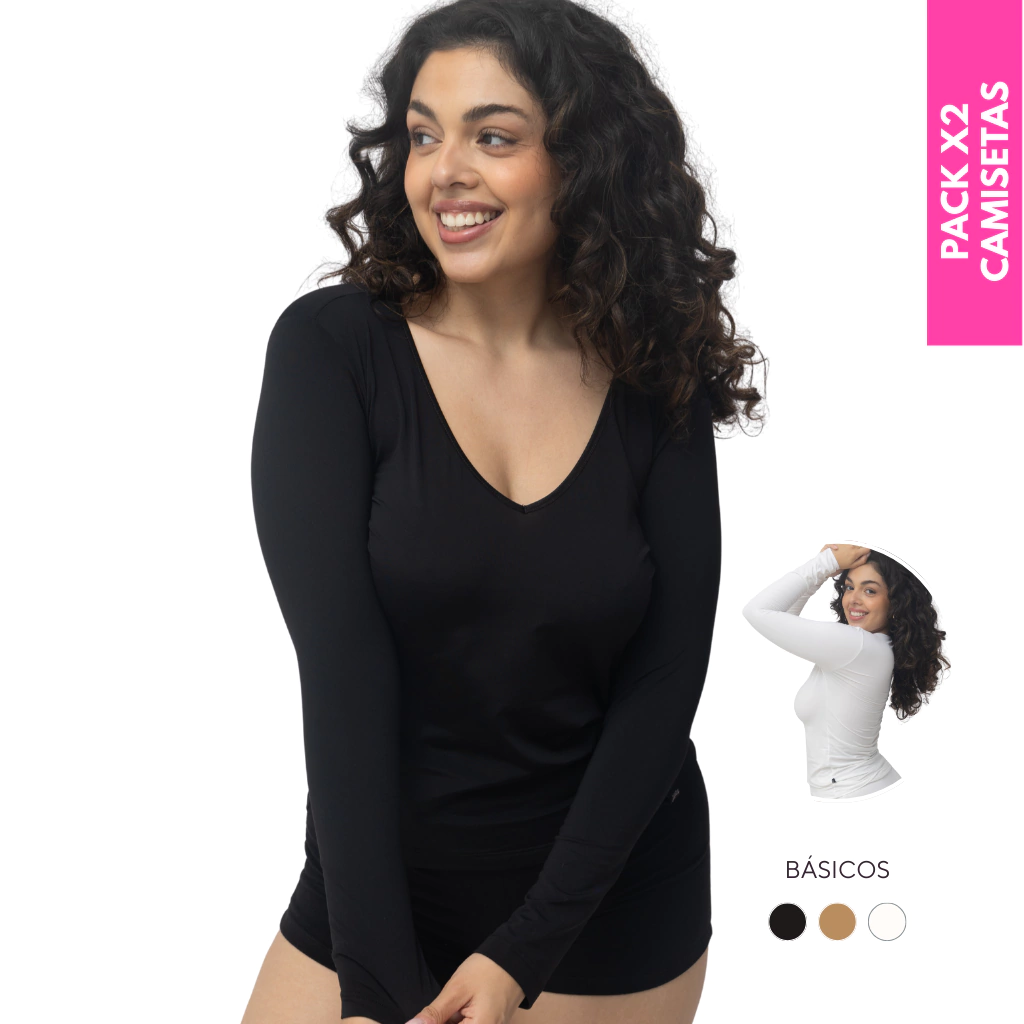 PACK X2 CAMISETA TÉRMICA MANGA LARGA ESCOTE EN V