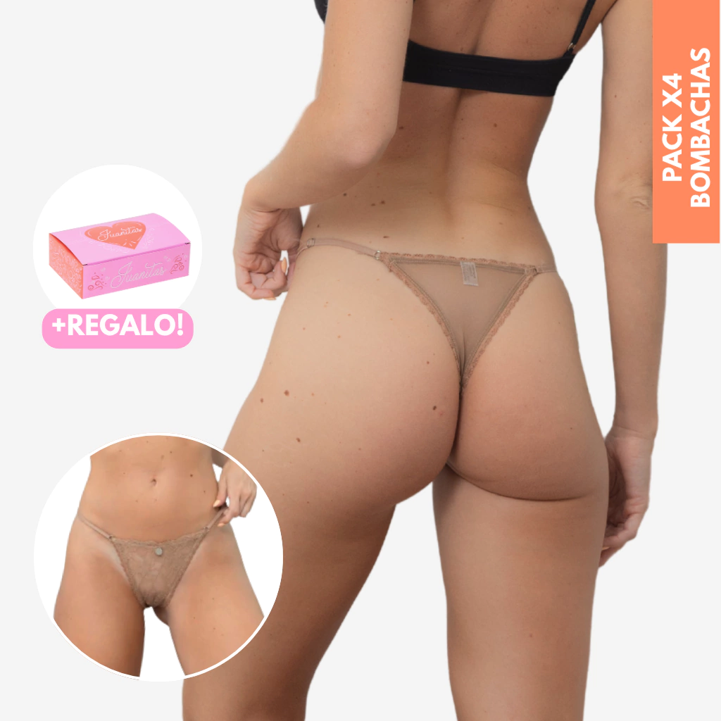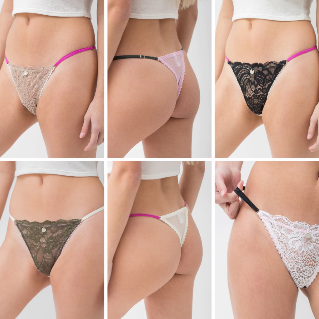 Este pack de colaless cuenta con tiritas regulables que se amoldan a las medidas de tu cadera. A su vez, la puntilla y el microtul le dan un toque romántico y delicado a tu conjunto.