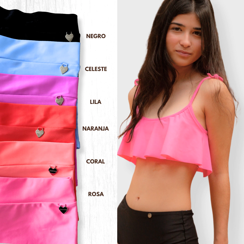 Este corpiño top cuenta con un calce único y con una variedad de colores en tendencia para este verano. Además cuenta con forro por dentro para evitar transparencias y bretel finos para atar. Viene del talle 12 al 18