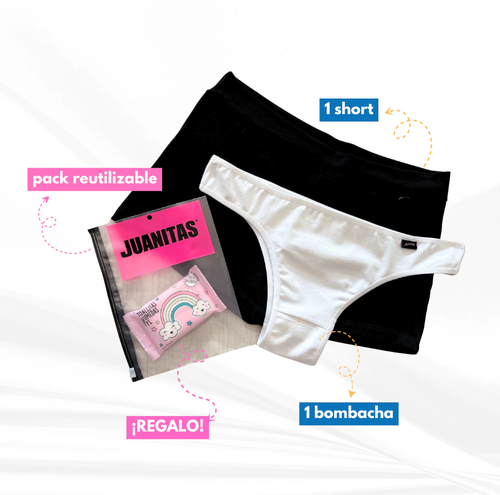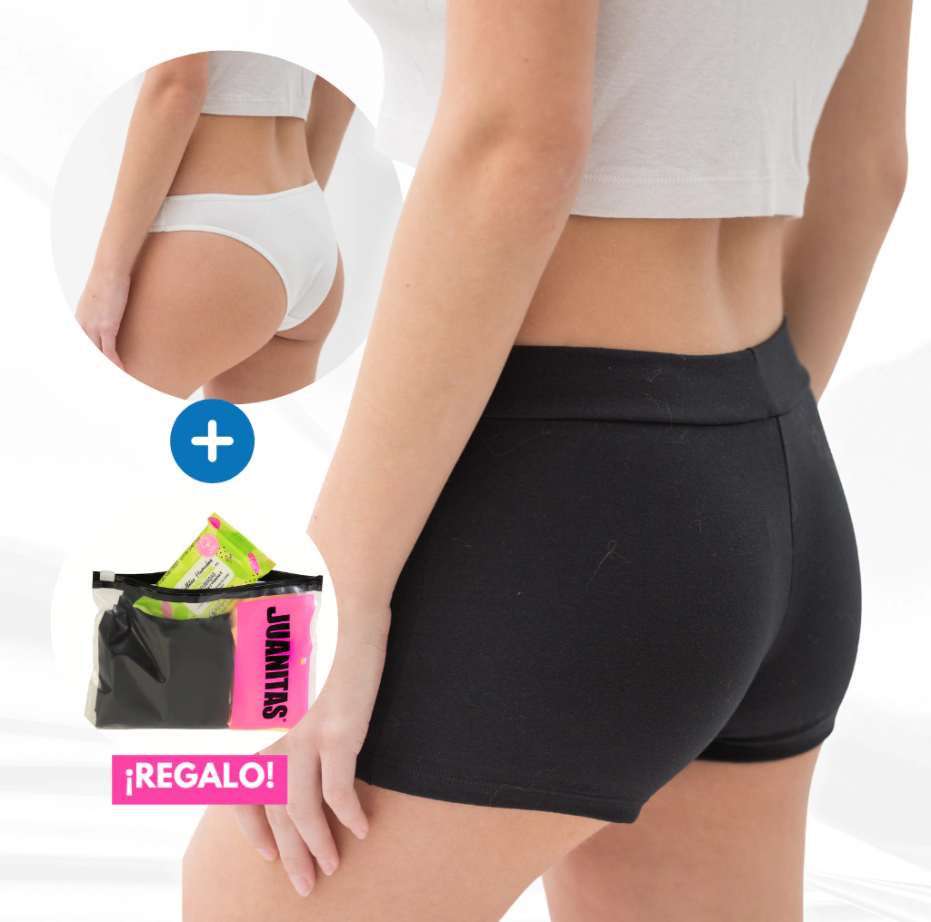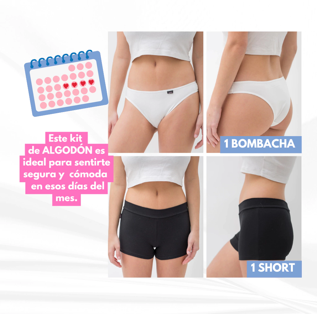 Este kit incluye una bombacha y un short de algodón suave. Confeccionadas para brindarte comodidad durante todo el día. Viene del talle 1 al 5.