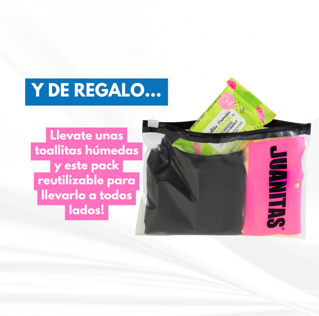 Este kit viene con toallitas húmedas de regalo y un pack reutilizable para que puedas llevarlo en tu cartera o mochila de forma practica.