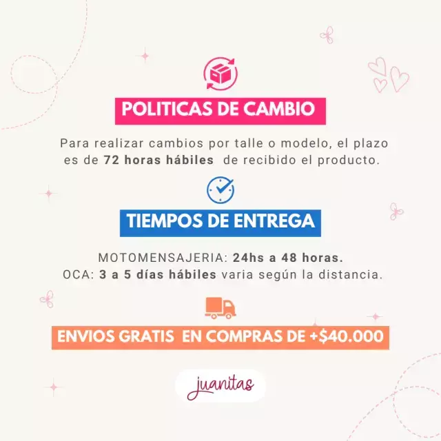 Colores disponibles: blanco y natural en talle 1 al 4, color negro en talle 3.